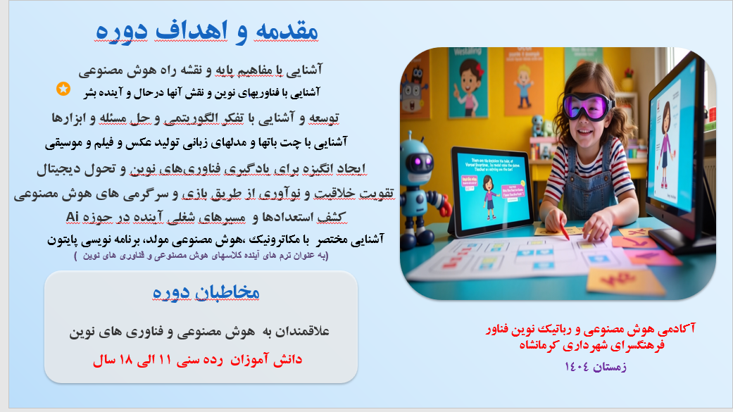 ثبت نام مستقیم کلاسهای هوش مصنوعی، رباتیک و فناوری های نوین